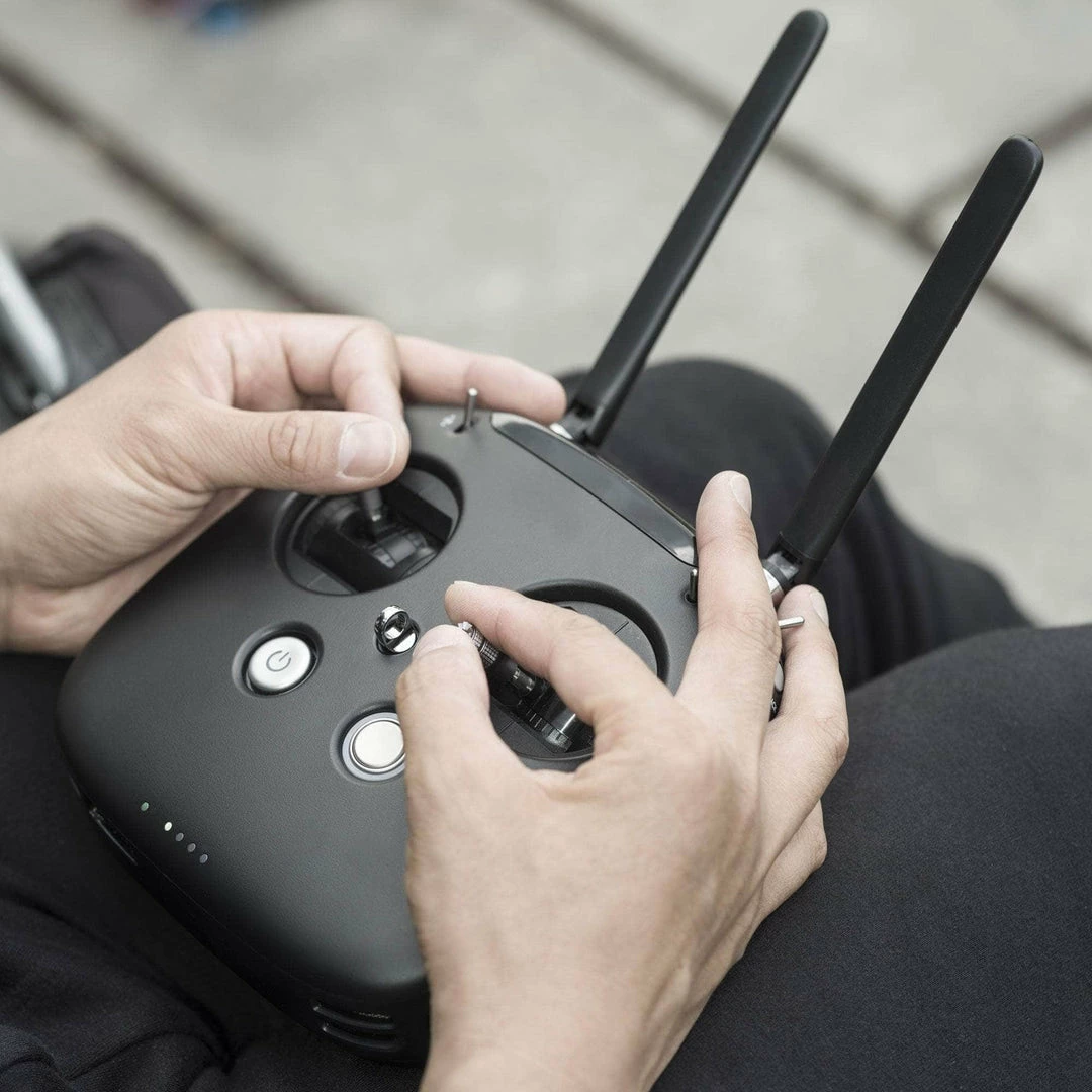 The DJI FPV Remote Controller ties the DJI FPV Goggles and DJI FPV Air Unit together into a cohesive system, allowing the user to remotely set parameters of the DJI FPV Goggles, the DJI Air Unit, and the DJI FPV Camera. With a control distance of 4KM to match the Air Unit video transmission, this system is perfect for mid-range flyers, providing a rock solid, low latency control link.