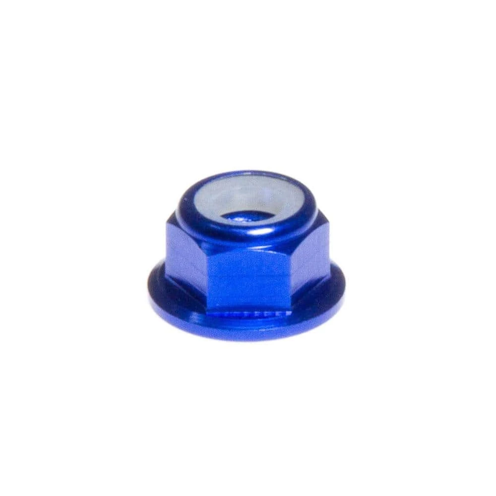 Individual anodized aluminum M5 nylock nut with flange in a variety of colors sure to suit your next build.