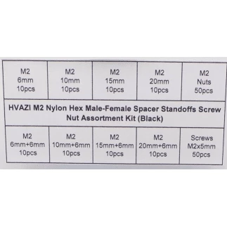 - M2 Black color total 180 pieces.Nylon Hex Spacers/Standoffs/Screws/ Nuts Assorted Kit