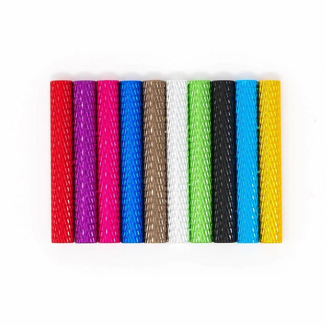 A straight style standoff with knurled edges in assorted colors!