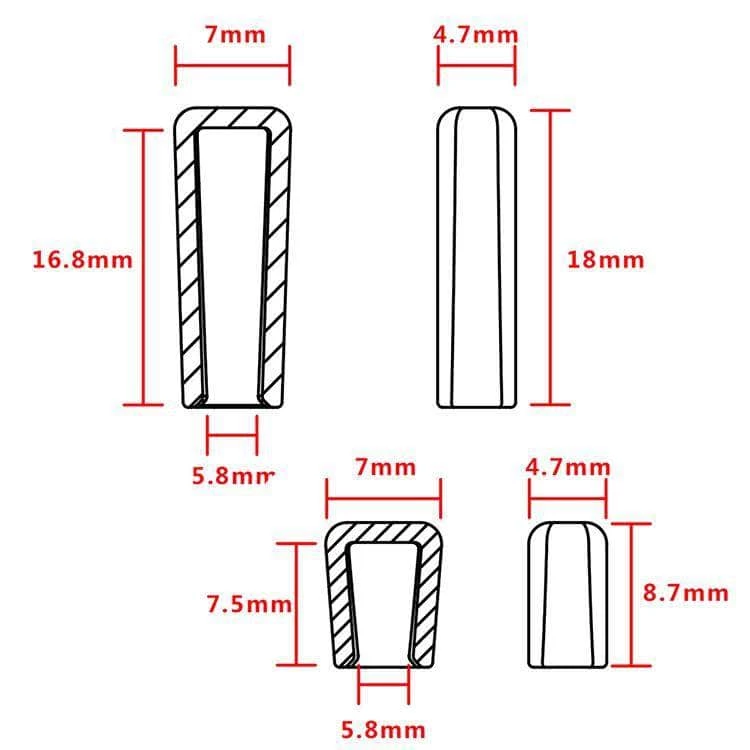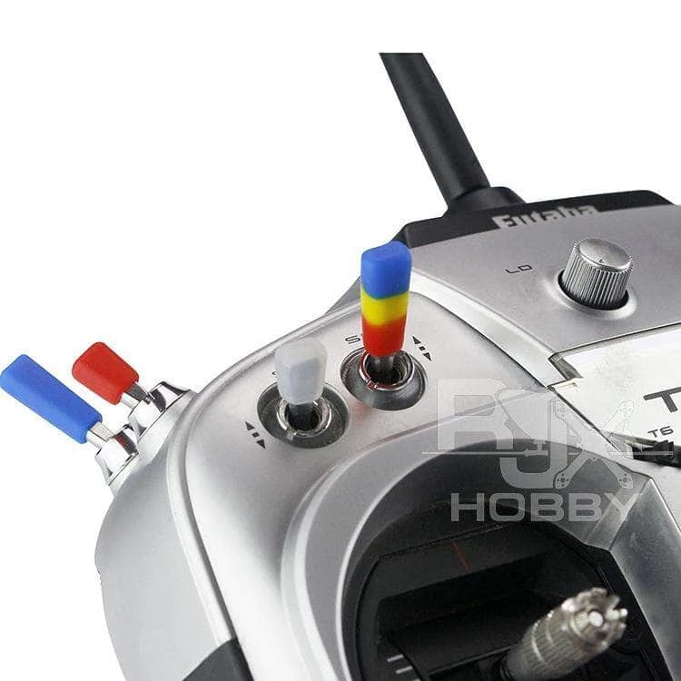 Add a little style, grip and protection to your TX switches! These non-slip silicone covers are molded to fit the standard switch types used on a wide variety of RC transmitters. Great for your FrSky, FlySky, Futaba, JR and more!