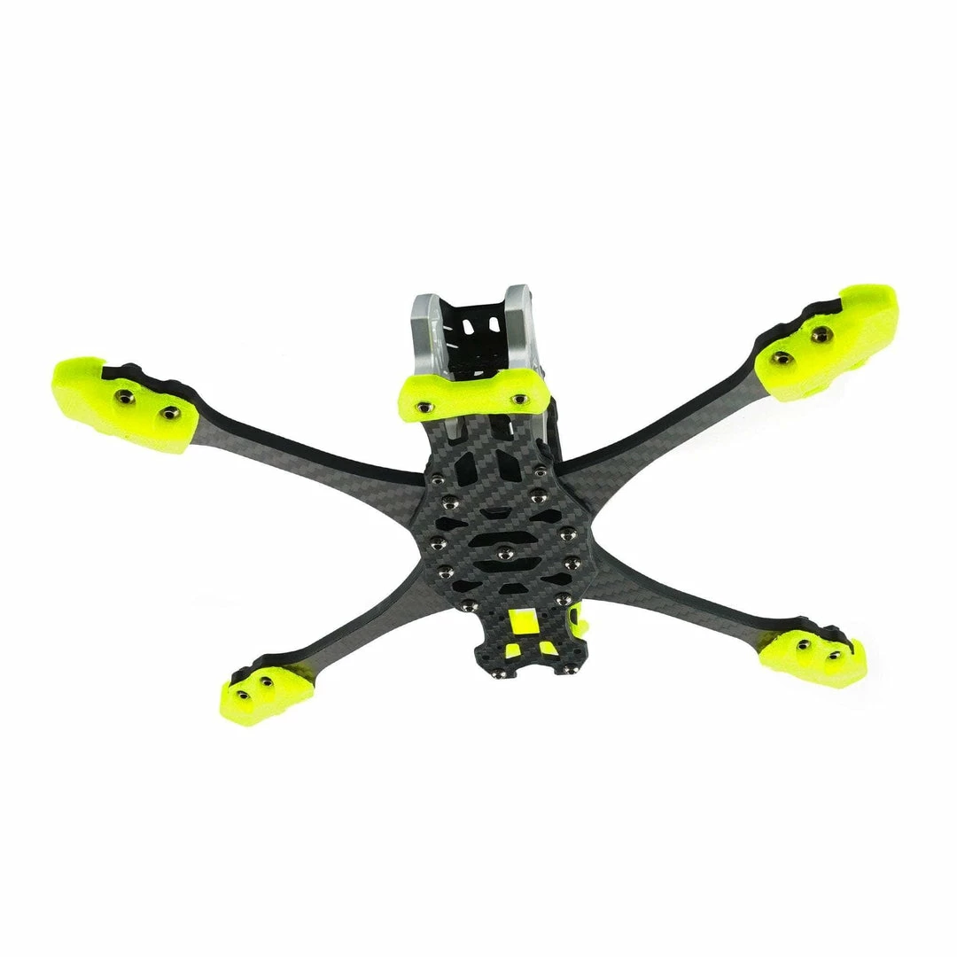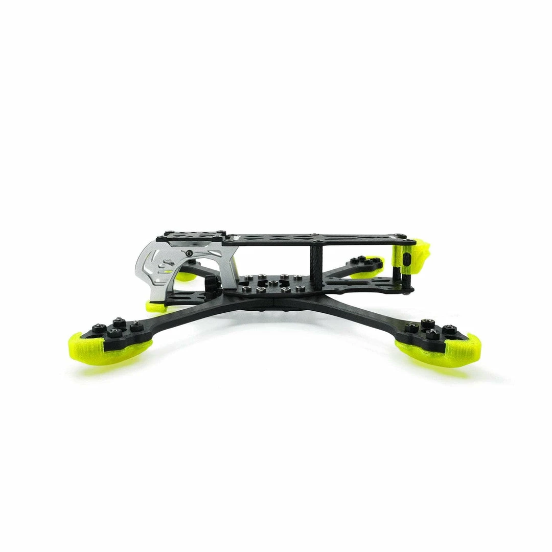 The MARK5 frame is developed specifically for freestyle with squashed X arm design. Unique shock absorbing structure design, less vibrations and resonance, to provide a stable operating environment for the electronic system. Aluminum alloy side plates not only look stunning, but also reduce weight and add more endurance.