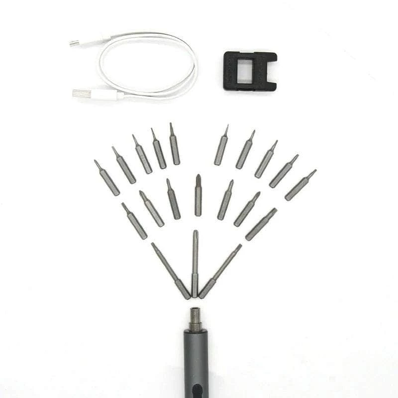 - 20x Bits (H4x28mm: PH0000, PH000, PHOO, PHO, PH1, SL1.0, SL1.5, SL2.0, T2, T5, T6, H3.0, Y0.6, Y2.5, P2, P5, P6 / H4x45mm: PH2, H2.0, SL2.5)