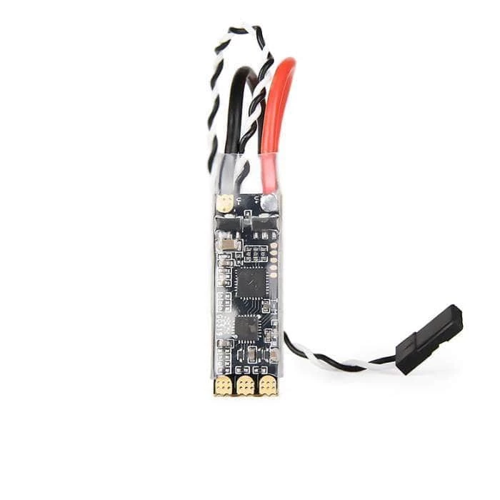 The ESC comes equipped with an aluminum heatsink to draw heat away from sensitive components and also shield it from damage. Each ESC has an RGBΒ LED able to be programmed to display various properties of your drone.Β
